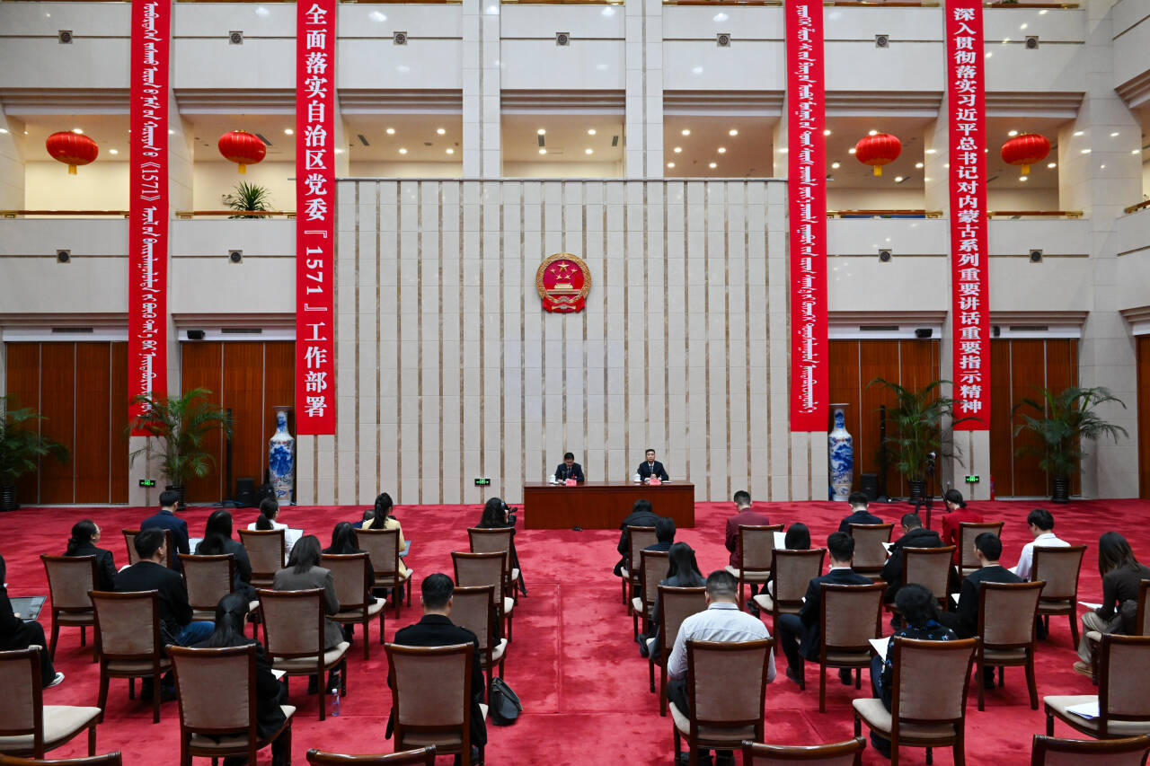 2月3日,内蒙古自治区第十四届人民代表大会第五次会议举行新闻发布会,介绍会议有关情况和工作安排。草原云记者 王磊 摄