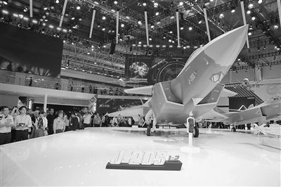 第十五届中国国际航空航天博览会11月12日在广东珠海开幕。航展首日,中国航空工业集团展馆内,我国自主研制的新一代中远程、重型、双座、多用途隐身战斗机歼-20S的缩比模型正式亮相。图为观众参观首次展出的歼-20S战机缩比模型。本报记者 都芃摄