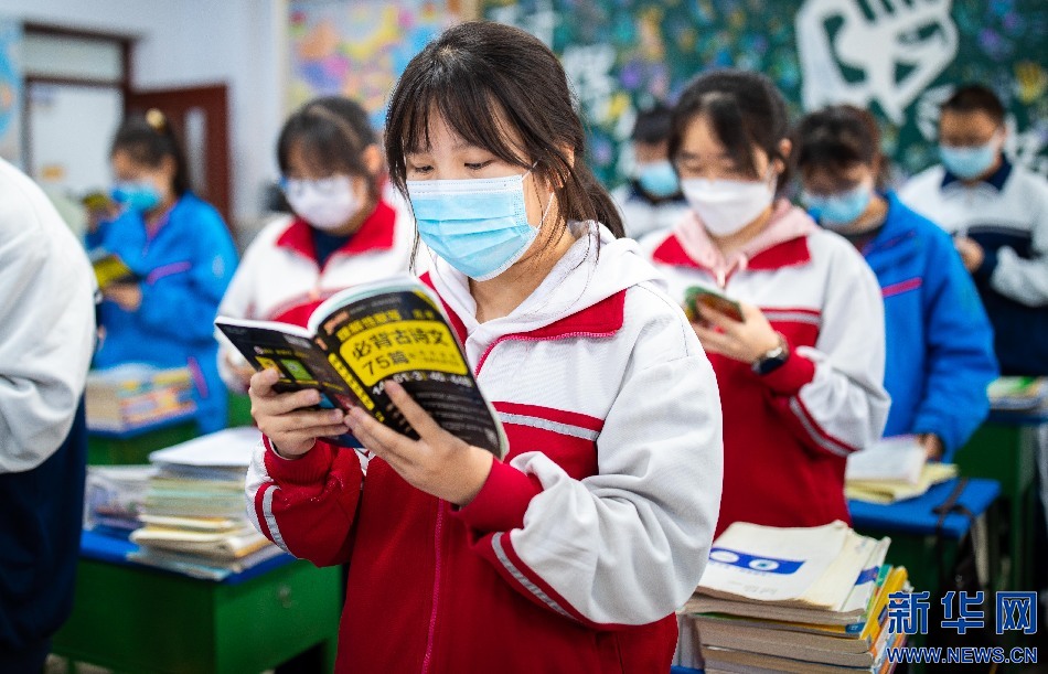 4月1日,内蒙古自治区呼和浩特市第六中学高三年级学生在进行晨读。新华网发(丁根厚 摄)
