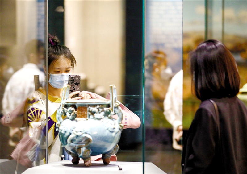 4月4日,观众在内蒙古博物院参观。4月3日,内蒙古博物院恢复对外开放,为进一步加强疫情防控工作,切实保障广大参观者的身体健康和生命安全,内蒙古博物院全面实施提前预约参观措施,每日预约参观人数为2000人。(记者 王磊)