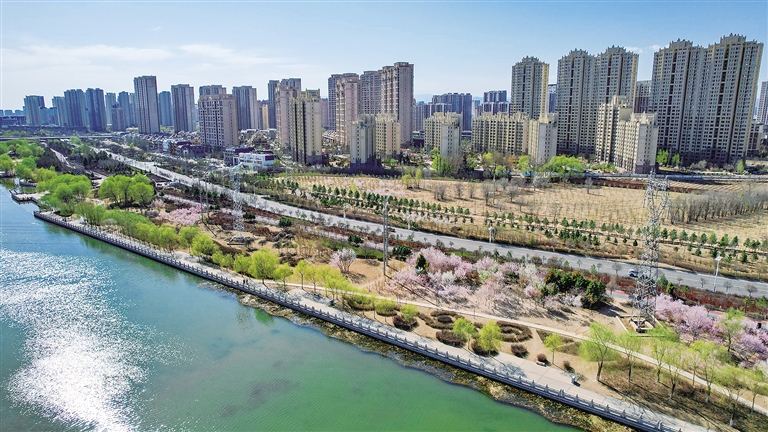 4月12日,呼和浩特市银河北街两旁的桃花、杏花等竞相绽放,为城市增添了一抹亮丽的色彩。在经历一轮大风降温天气后,呼和浩特地区再次回归风和日丽、晴空万里的春日美景。(记者 王磊 )