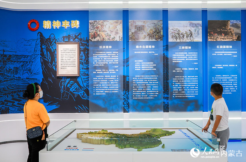 观众在展馆内观看南水北调红旗河调水工程沙盘。丁根厚摄