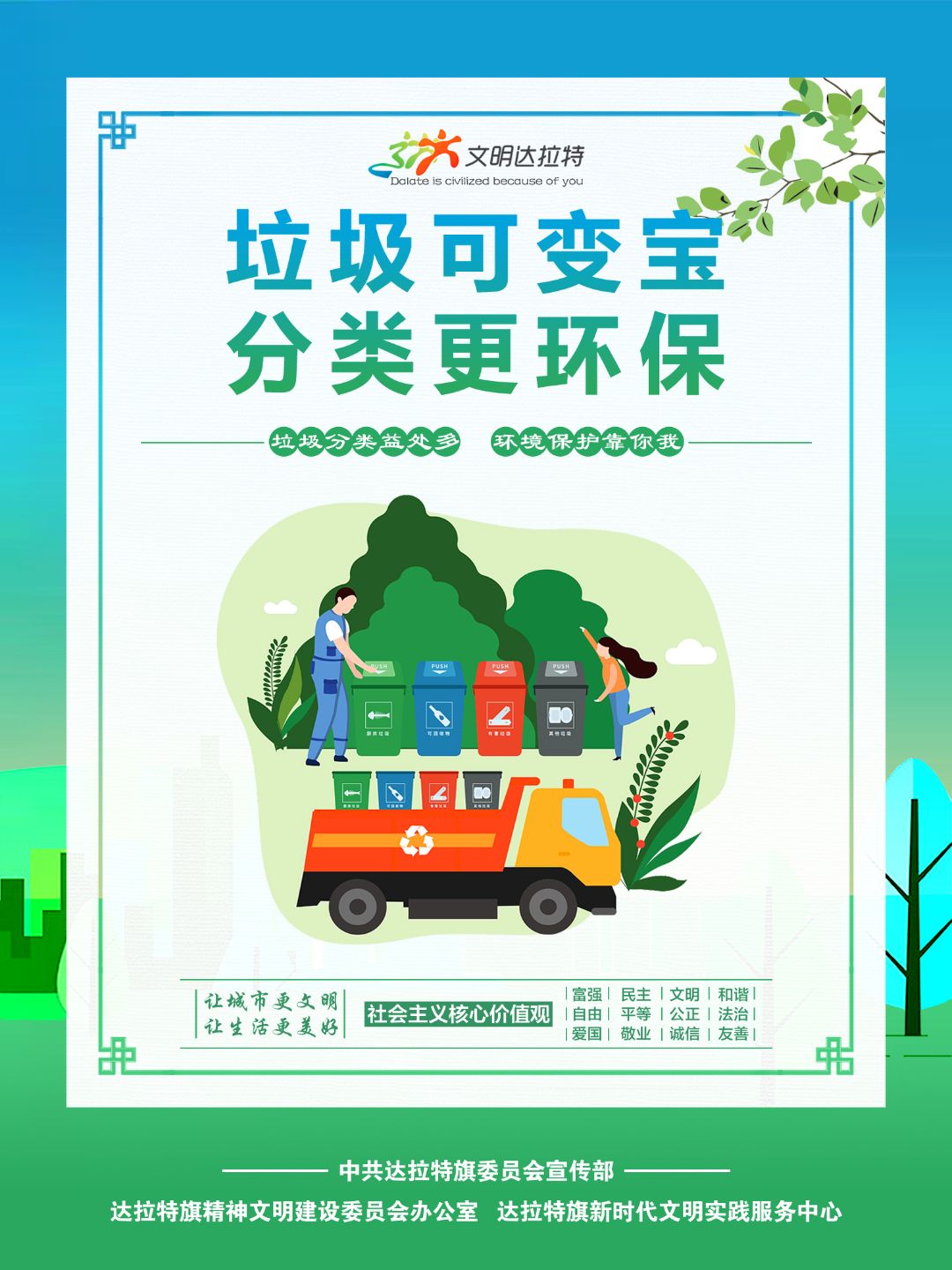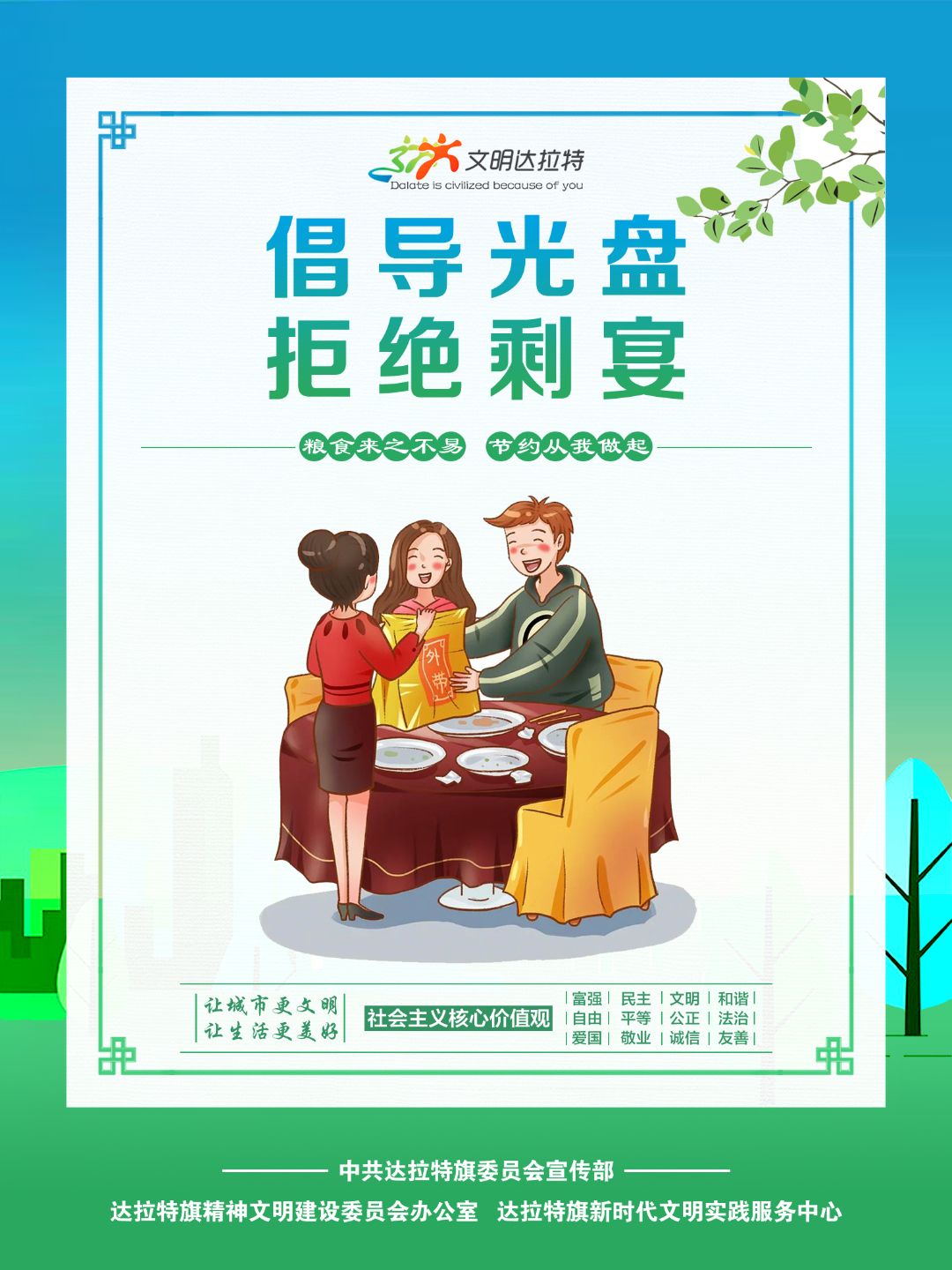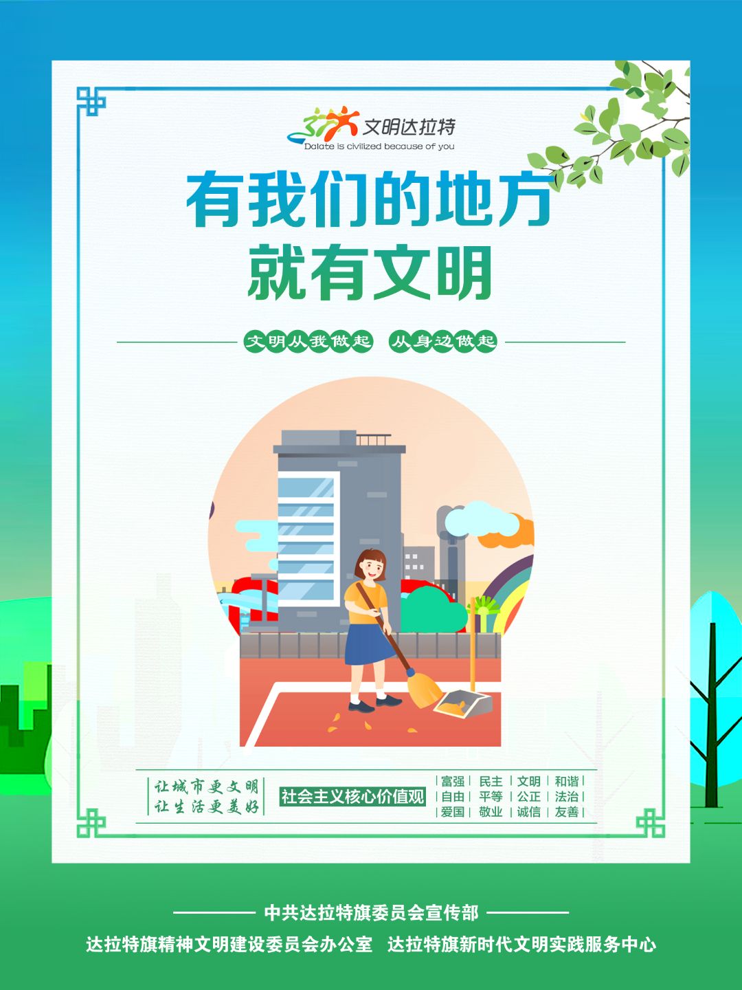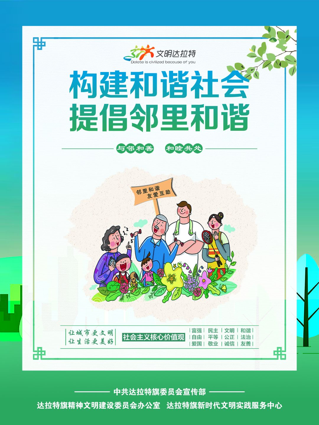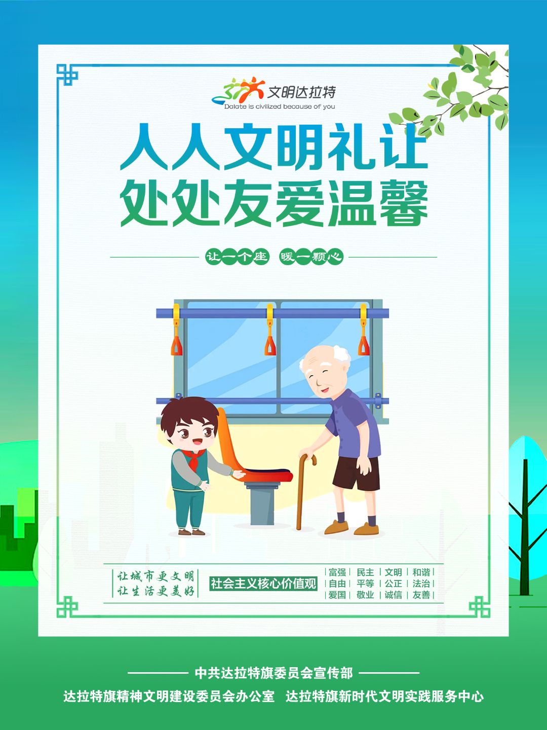 近年来,内蒙古自治区各盟市、旗县(市、区)设计制作了一批具有很强表现力、感染力、传播力的公益广告作品,用简洁明快、通俗易懂的画面和语言,阐述文明故事,弘扬文明理念,引领时代新风,为统筹推进文明培育、文明实践、文明创建营造了良好的舆论环境。