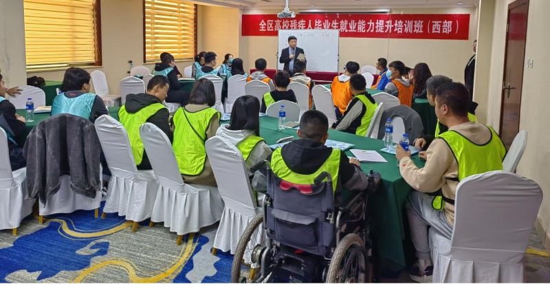 本报讯(记者 张鑫)4月24日,全区高校残疾人毕业生就业能力提升培训班(西部)在呼和浩特市开班,自治区残疾人就业服务中心副主任李青出席了开班仪式并致辞,来自呼和浩特市、包头市、乌兰察布市、巴彦淖尔市、阿拉善盟就业中心的工作人员与高校残疾人毕业生约50人参加了培训。