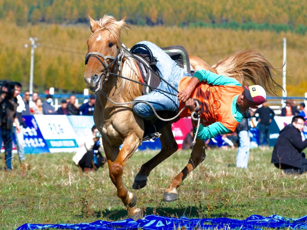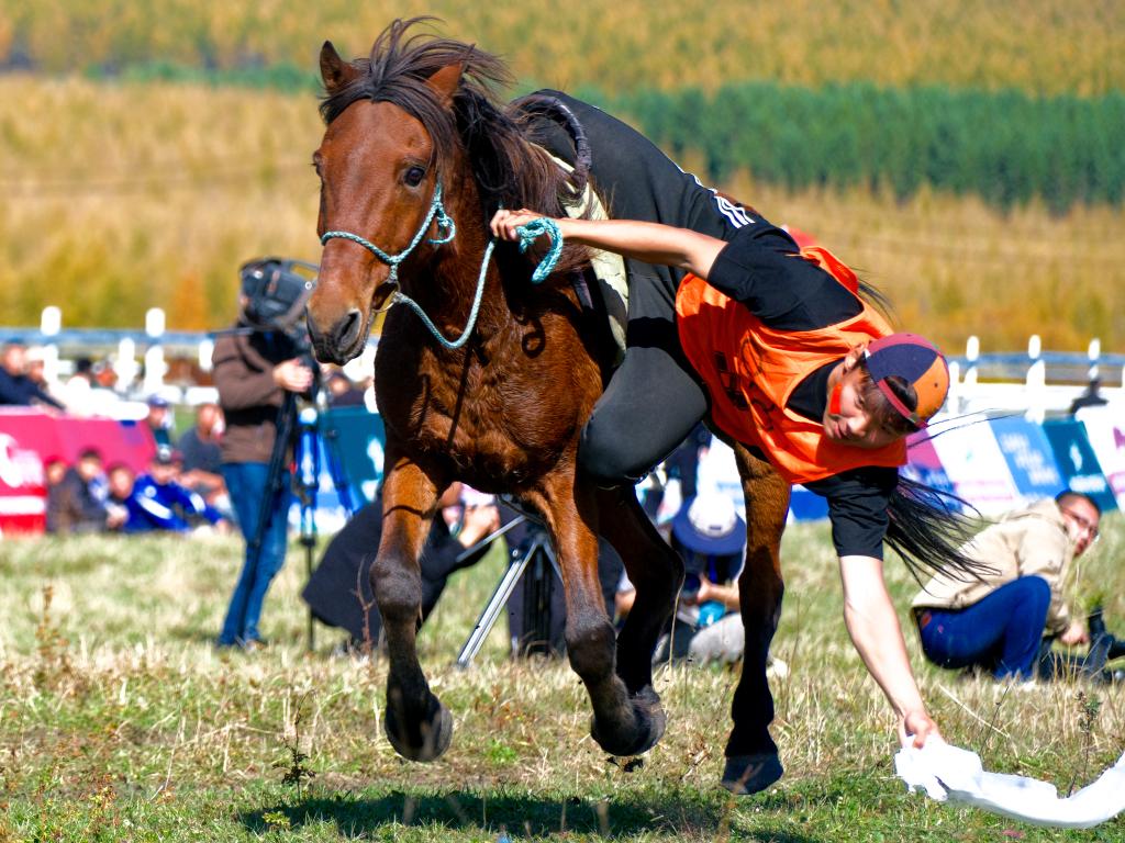 开赛首日,跑马拾哈达项目率先进行。在110米的赛道上,骑手们策马奔驰,在疾速中俯身精准拾取放置于赛道上的哈达,精湛的骑术与独特的民族风情赢得了现场观众的阵阵欢呼。