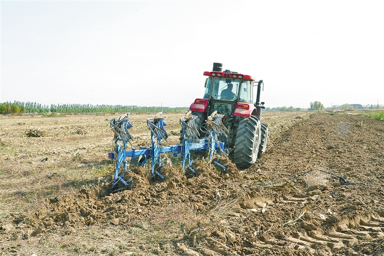 巴彦淖尔市临河区城关镇万丰村正在深耕秋收后的土地。