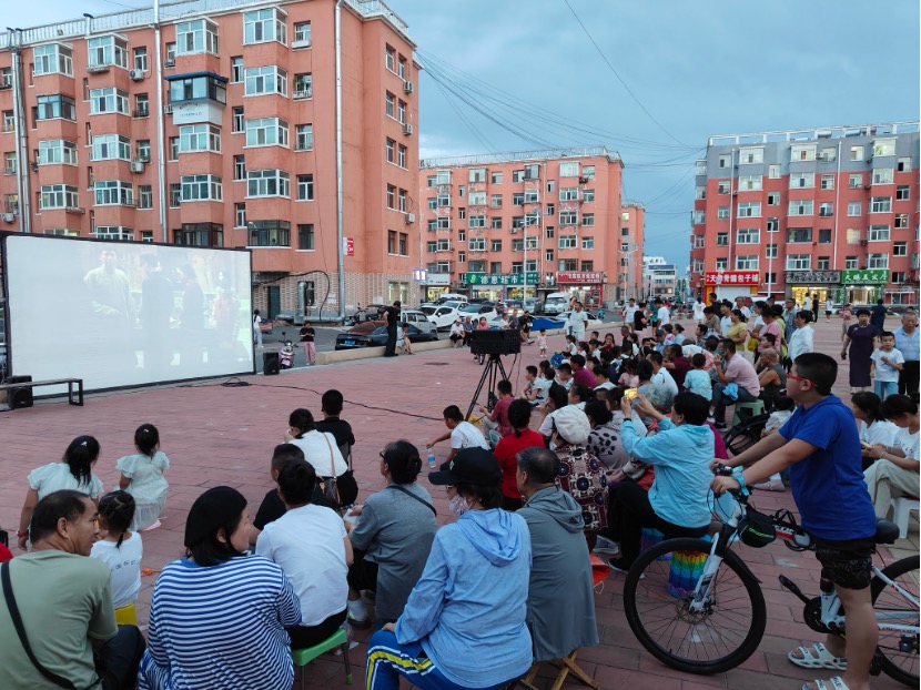 2025年的夏天,乌兰浩特市的群众在夜晚遛弯、跳广场舞之余,又多了一项新选择:看露天电影。8月的夜晚,星星还没布满天空,在天骄街道红星社区城市之星小区的院子里,露天电影已经布设好,居民三三俩俩或搬着小板凳儿、或带着小棉垫儿,大家围坐在一起,津津有味地看电影。“今天播放的电影是哪吒2之魔童降世,真是太好看啦。平时没时间去电影院,现在在家门口就看上,不仅重温了童年的美好回忆,还增进了邻里之间的感情,现在感觉小区的氛围越来越温暖了。”居民王丽丽看过电影后幸福感满满。