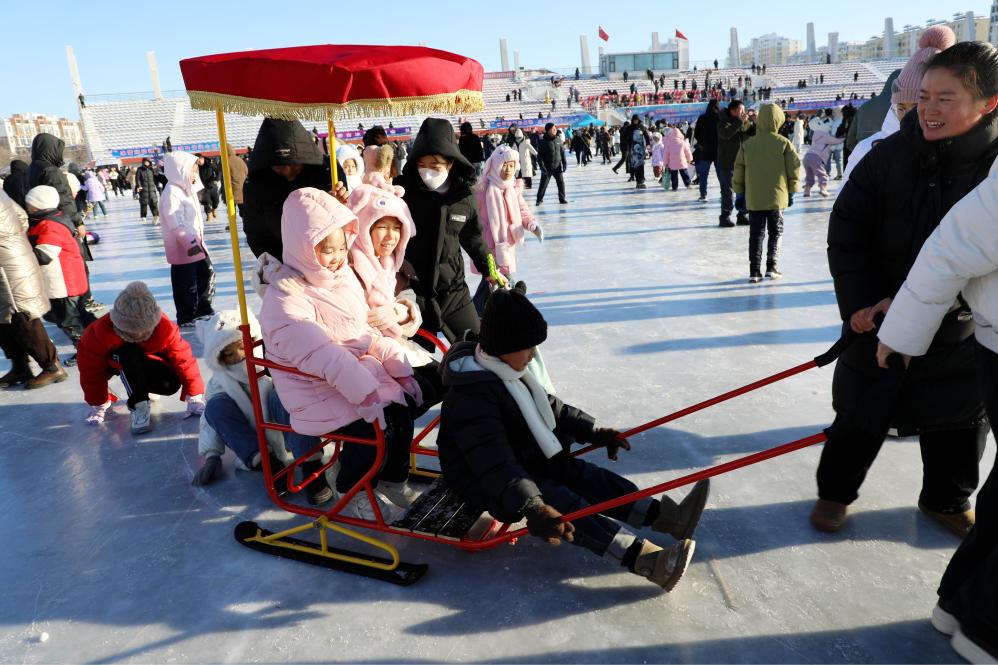 阿荣旗冰雪嘉年华活动精心打造“冰雪+竞技”“冰雪+民俗”“冰雪+趣味”多元融合的活动矩阵。速度滑冰邀请赛、雪地足球赛尽显冰雪竞技的速度与激情;抽冰嘎、打哧溜滑等传统项目唤醒满满的童年味;抓大鹅、抓羊、冰壶体验等新潮玩法趣味十足。