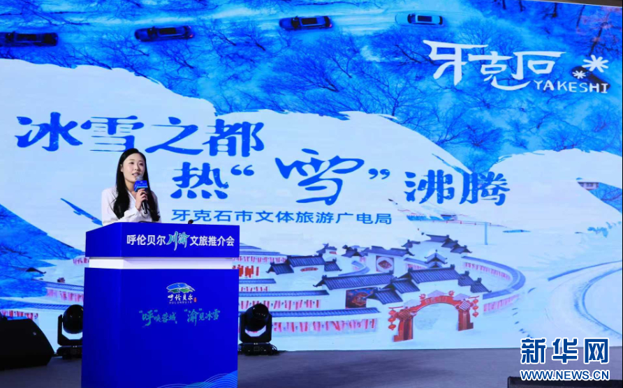 28日,在呼伦贝尔川渝文旅推介系列活动中,牙克石文旅推介官陈南进行推介。新华网发