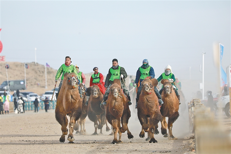 阿拉善万峰驼那达慕大会赛驼比赛。
