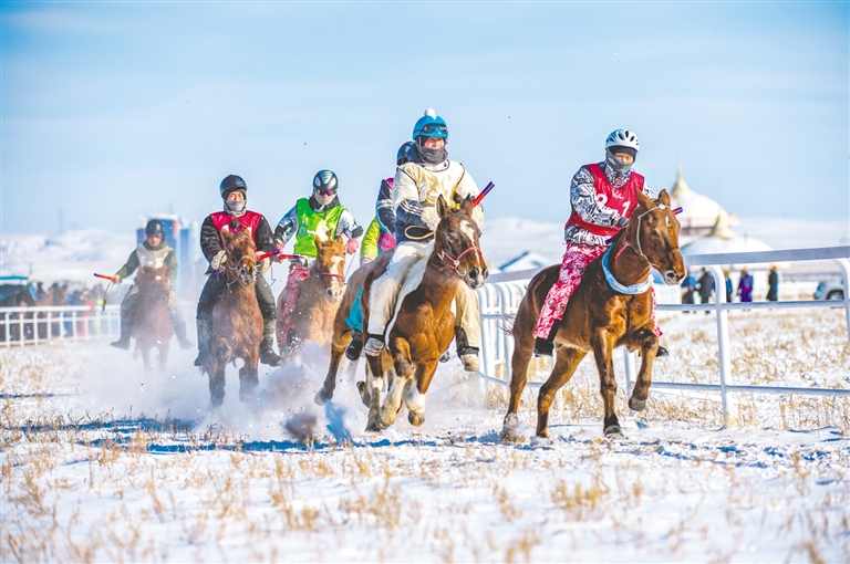 1月18日,锡林浩特市那达慕风情园内马蹄踏雪、人声鼎沸,“歌游内蒙古·畅享锡林浩特”——冬季那达慕暨蒙古马超级联赛在欢腾的歌声中拉开序幕。