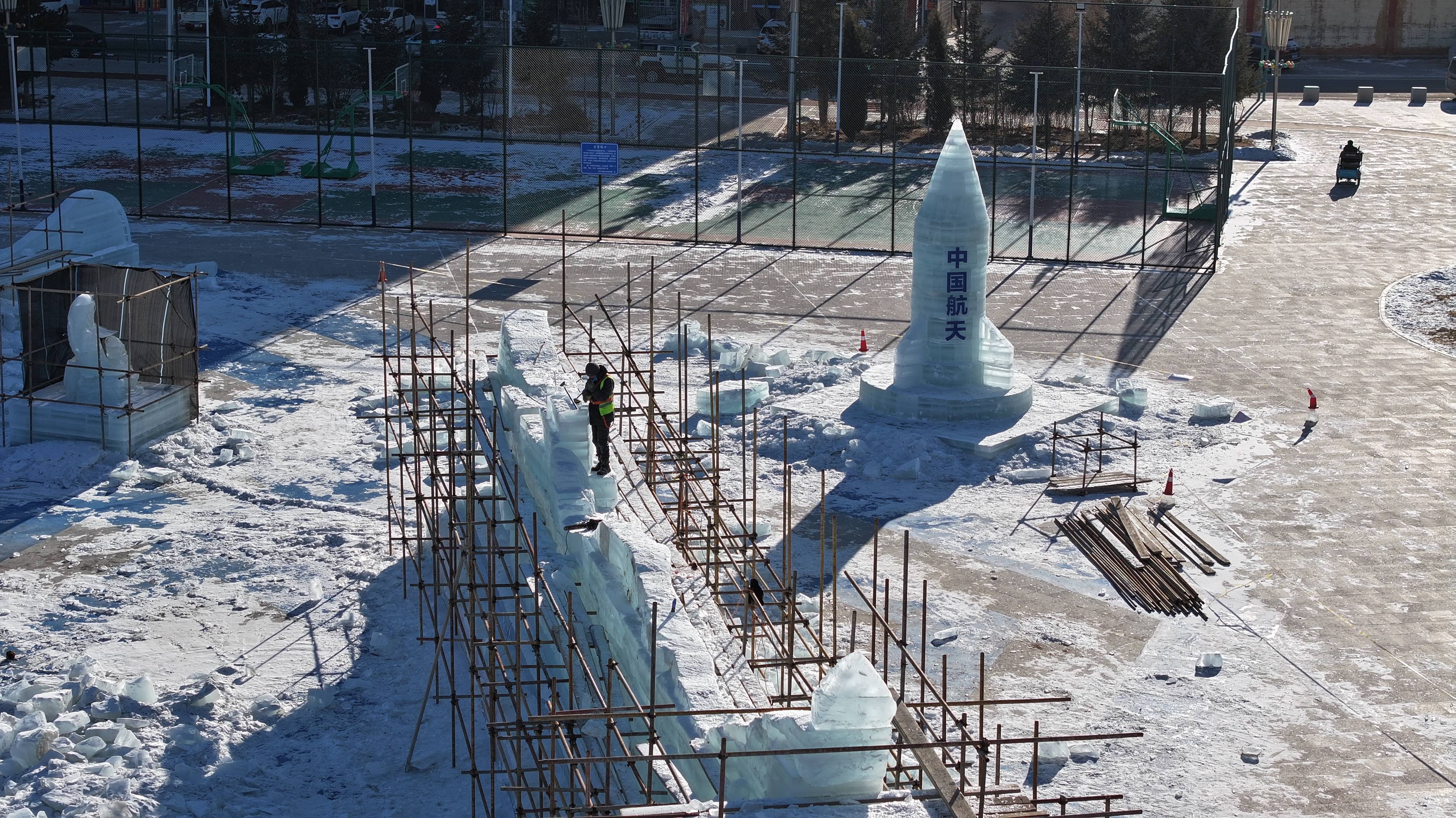 在哈萨尔广场,以30米长、6米高的“盛世中华”冰雕为中心,搭配神舟飞船、蒙古马、熊猫、鲤鱼、哪吒、米老鼠等冰雕组合,内置流光溢彩的LED彩灯,呈现“冰晶耀星河”的梦幻场景,是游客打卡拍照的绝佳选择。在博物馆广场前,300个形态各异的雪人组成“雪娃参观团”有序排列,仿佛等待着进馆参观的游客,为冰雪那达慕增添了新的雪趣。