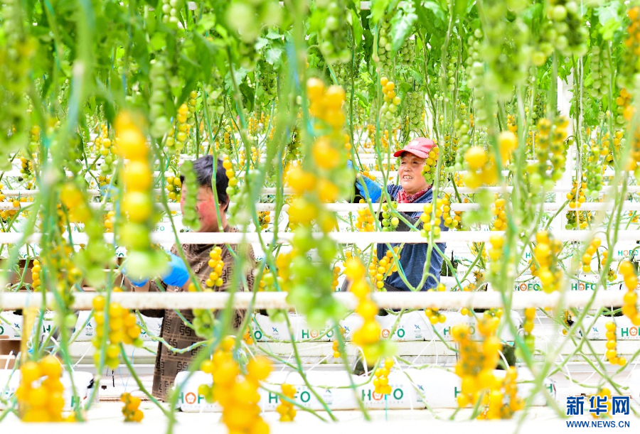 3月22日,工人在乌兰察布宏福农业产业园智能温室里管护番茄。新华网发(王正 摄)