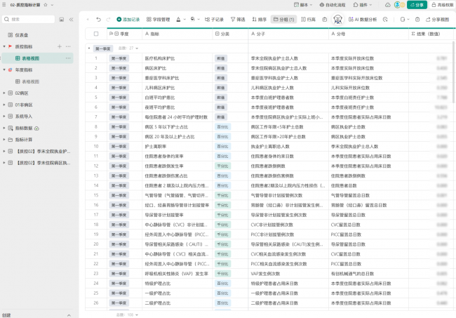 护理质量控制是医院生命线。过去,护理部每月需核算全院 100 多项质控指标,管理人员深陷于「报表丛林」,人工嵌套公式核算不仅耗时 4~5 天,且存在差错风险。