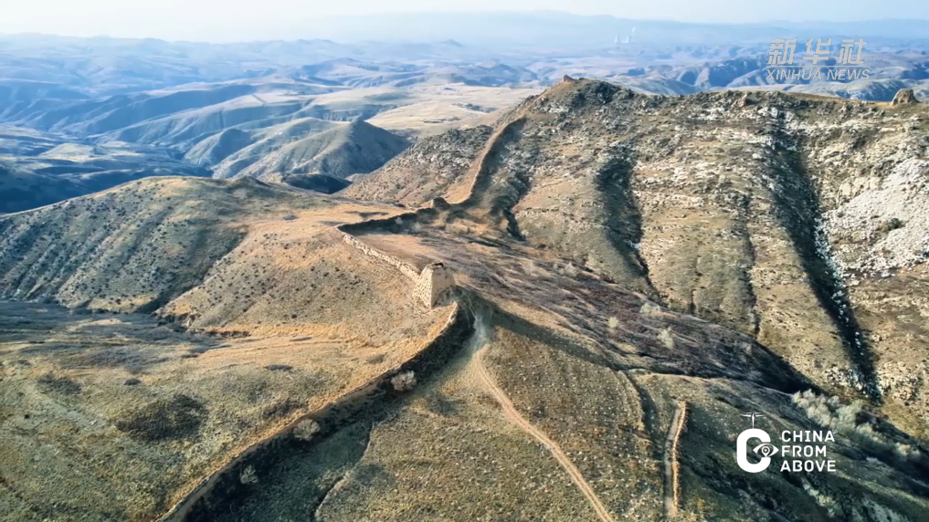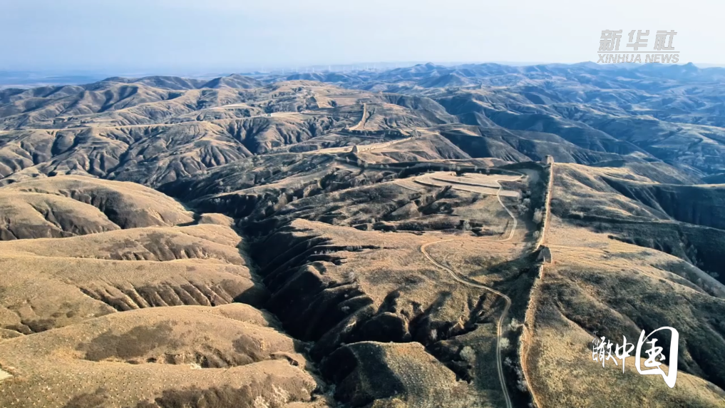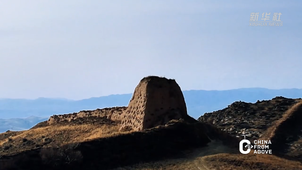 冬日柔和的阳光倾泻在古老的夯土墙上,为其镀上一层金辉,与连绵群山、苍茫大地相映交融,共同绘就一幅跨越时空的壮阔画卷。
