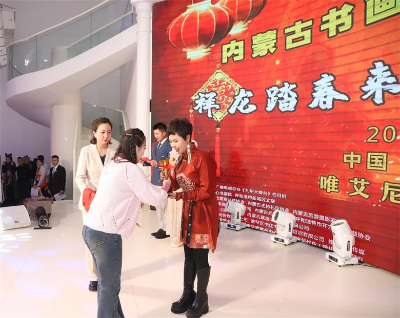 1月10日,以“祥龙踏春来 四季同欢歌”为主题的第三届内蒙古书画春节联欢晚会在呼和浩特市圆满举行。本次晚会汇聚了近500位内蒙古老中青书画家、演艺明星、政企嘉宾以及热爱中国传统文化的社会各界爱心人士代表,用书画、歌舞、相声等丰富多彩的形式,总结2023,展望2024。