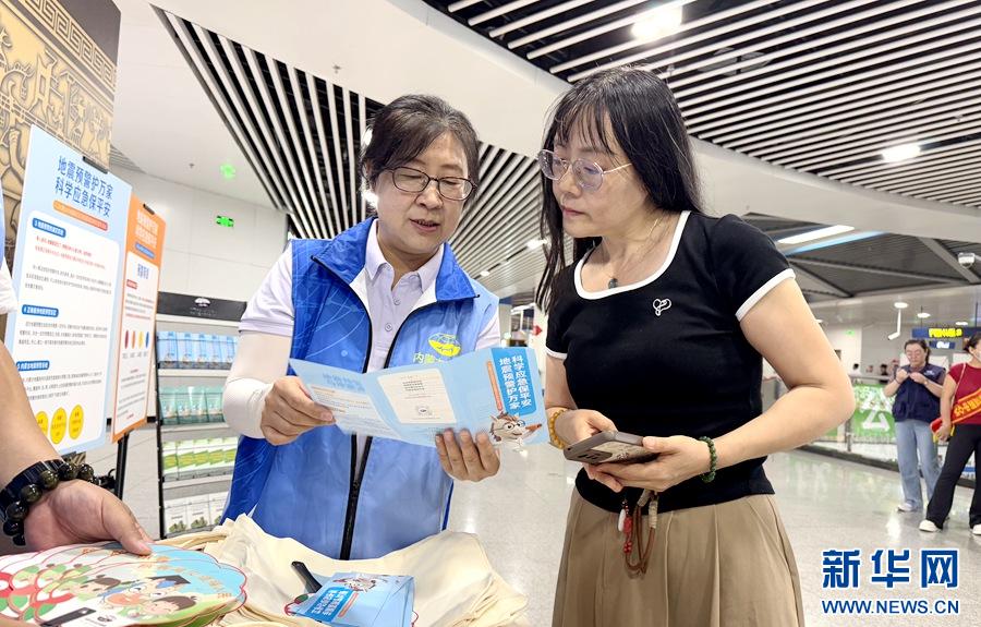 7月28日,内蒙古地震局、自治区应急管理厅、呼和浩特市应急管理局联合多家单位在呼和浩特市新华广场地铁站开展“地震预警护万家 科学应急保平安”7.28唐山大地震纪念日防震减灾救灾宣传活动。新华网 李倩摄