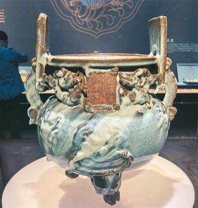元代钧窑“小宋自造”香炉。人民日报记者 张 枨摄