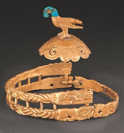 战国时期鹰顶金冠饰。内蒙古博物院供图