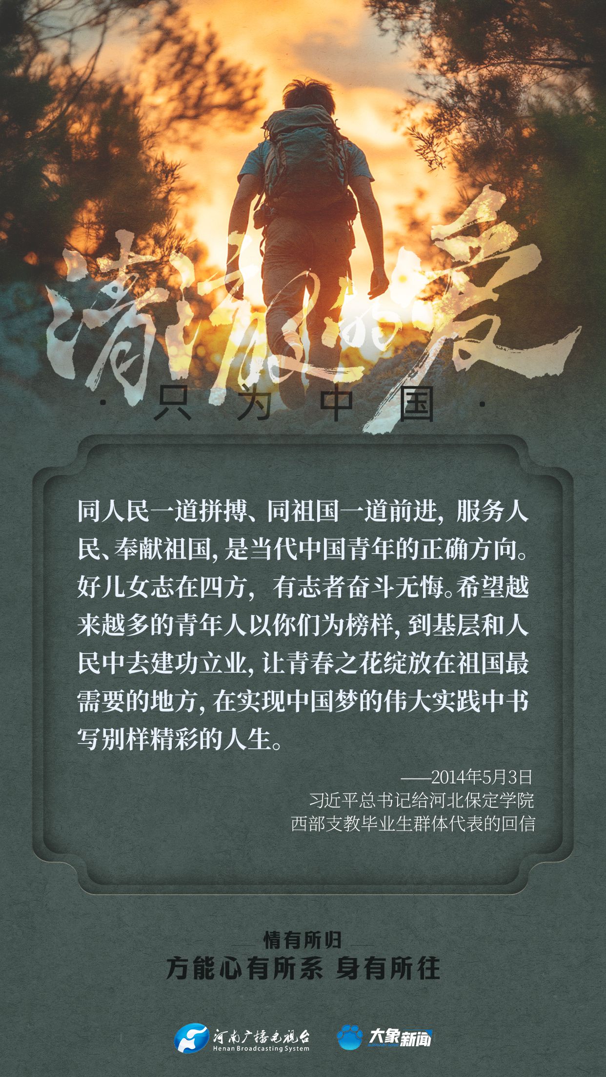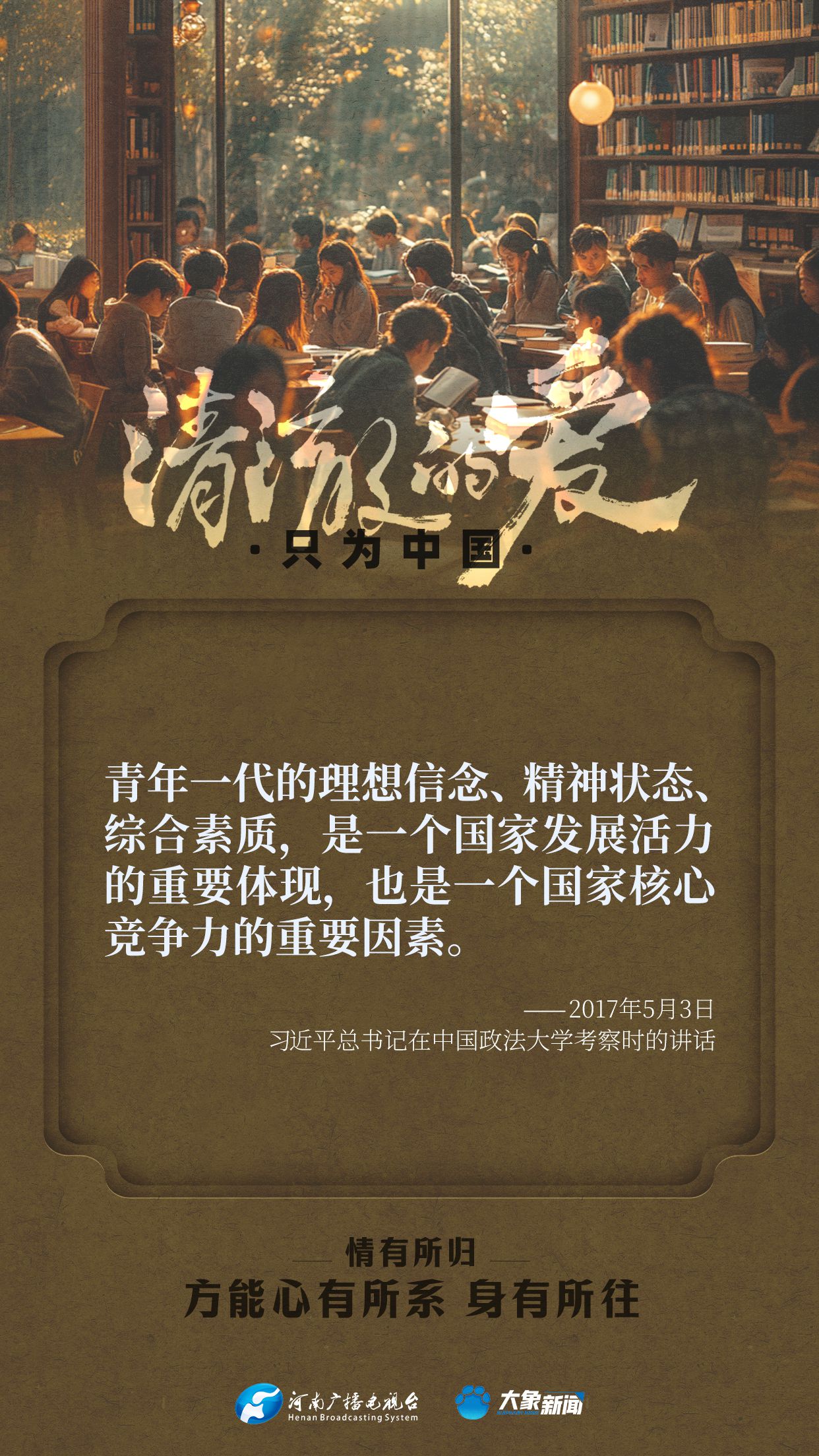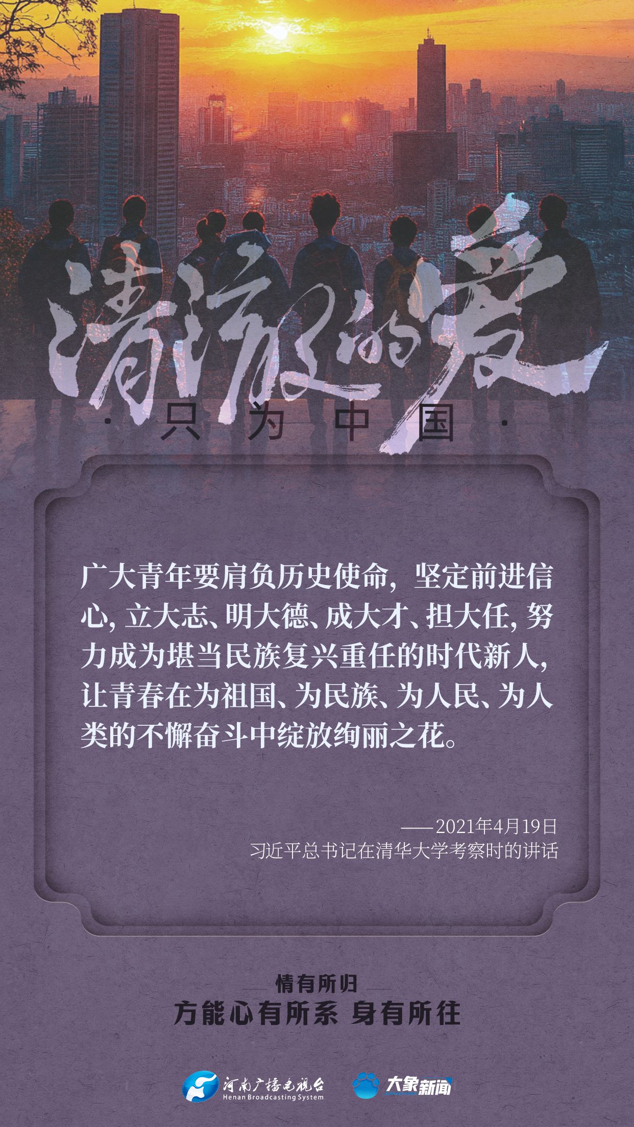 习近平总书记对广大青年寄予厚望。党的十八大以来,他多次来到青年中间,同大家谈人生、话理想,鼓励青年人心系祖国,志存高远,脚踏实地,在奋斗中创造精彩人生,为祖国和人民贡献青春和力量。