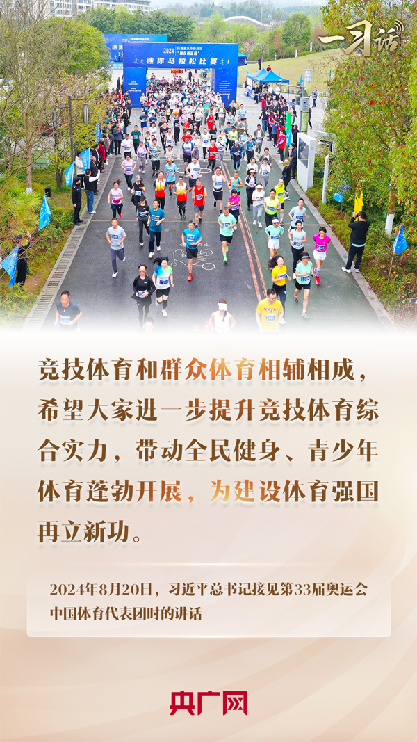 近日,在接见第33届奥运会中国体育代表团时,习近平总书记指出,竞技体育和群众体育相辅相成,希望大家进一步提升竞技体育综合实力,带动全民健身、青少年体育蓬勃开展,为建设体育强国再立新功。体育,在总书记心中有着很重的分量。