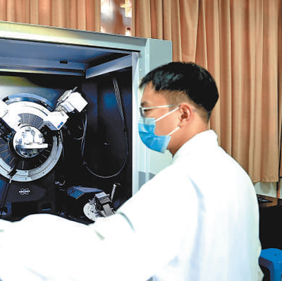 云南民族大学钛基金属及复合材料技术研究中心,科研人员在进行焊接材料性能测试。陈 菓摄(影像中国)