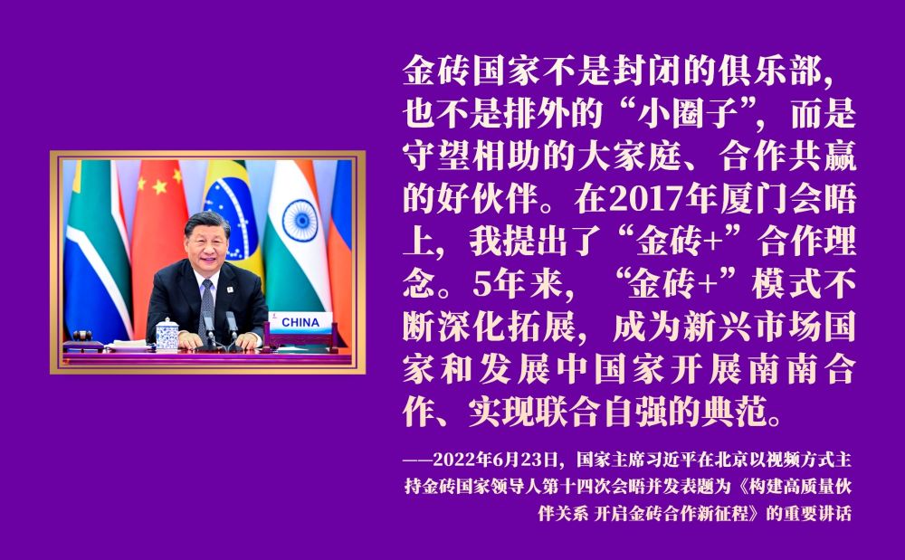 中国一直是金砖扩员的积极推动者。从2017年中国提出“金砖+”合作模式、首次将金砖合作伙伴对象扩大至全球范围,到如今实现历史性扩员,金砖成色更足、分量更重、影响更大。