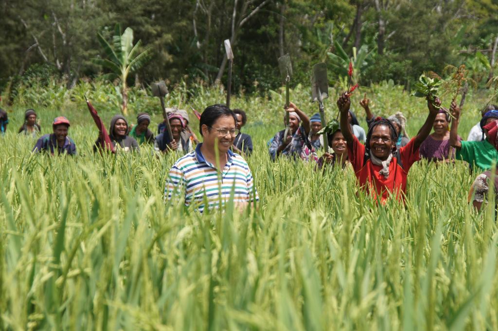 △ 2019年12月17日,首次参与中国援巴新旱稻项目的巴布亚新几内亚农户,看到自己种植的旱稻长势喜人。