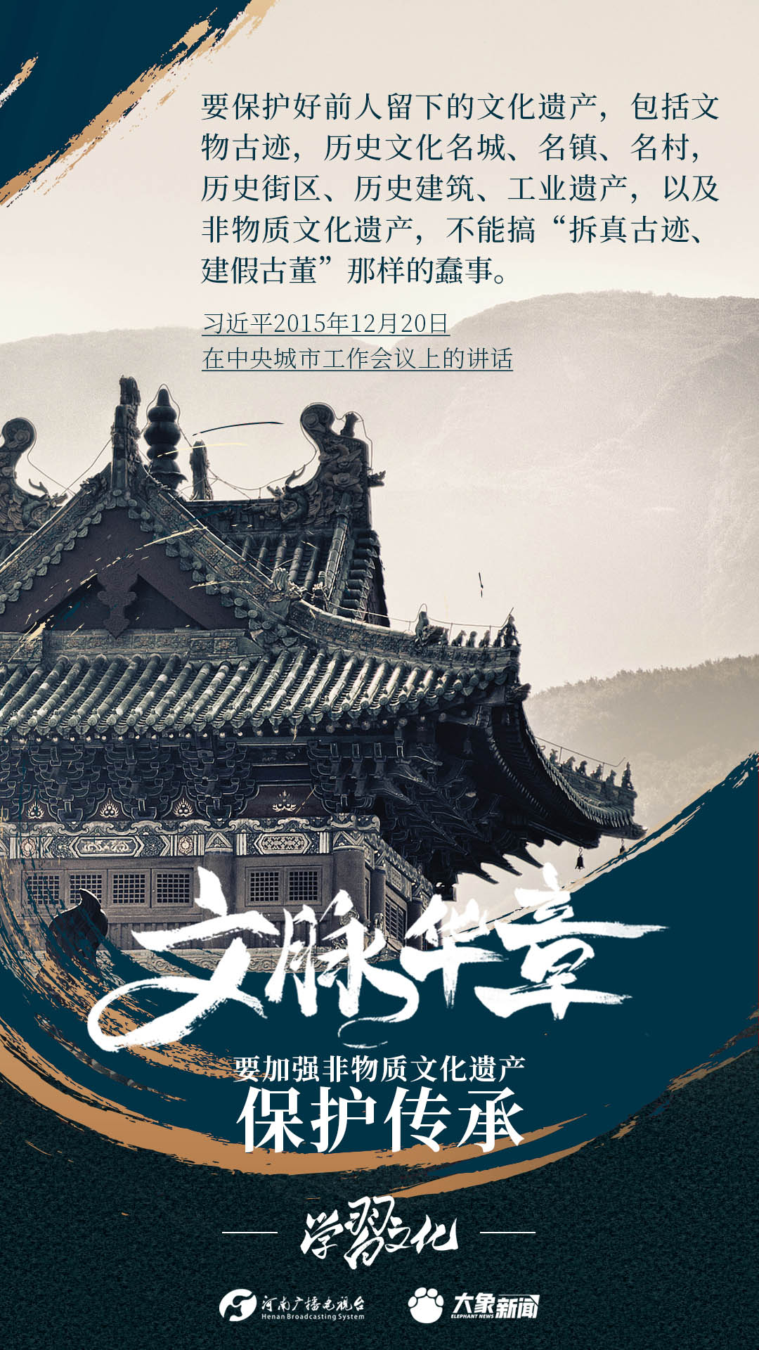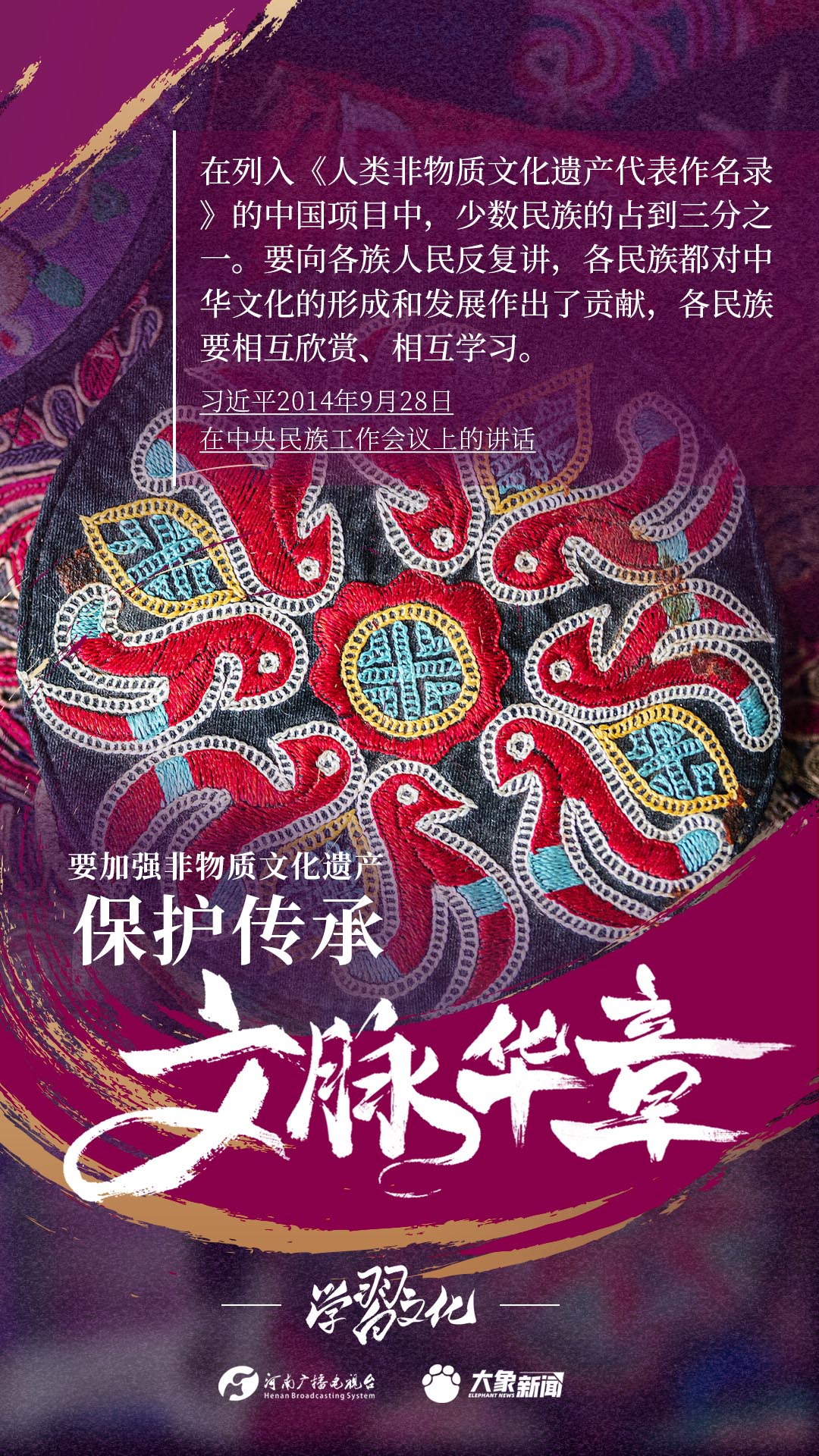 非物质文化遗产是中华优秀传统文化的重要组成部分,是中华文明绵延传承的生动见证,是我国各族人民宝贵的精神财富。习近平总书记十分关心非物质文化遗产的保护传承,多次强调“要扎实做好非物质文化遗产的系统性保护”“培养好传承人”等。大象新闻为您梳理,邀您一起学习、领悟、践行。
