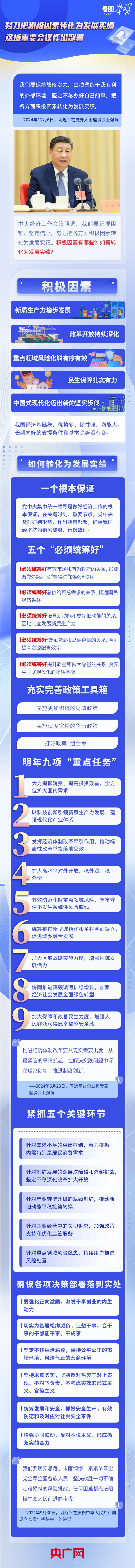 今年是实现“十四五”规划目标任务的关键一年。“经济社会发展主要目标任务即将顺利完成”“一年来的发展历程很不平凡,成绩令人鼓舞”……此次会议对即将过去的2024年经济工作作出总结分析。明年中国经济怎么干?《看图学习》栏目梳理总书记部分重要论述,结合中央经济工作会议要点,与您一起学习领悟。