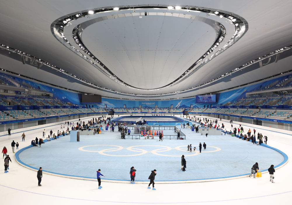 2025年1月4日,游客在国家速滑馆体验滑冰。2024至2025雪季,国家体育场“鸟巢”欢乐冰雪季、国家速滑馆“冰丝带”冰雪狂欢季等活动相继开展,吸引了众多游客。