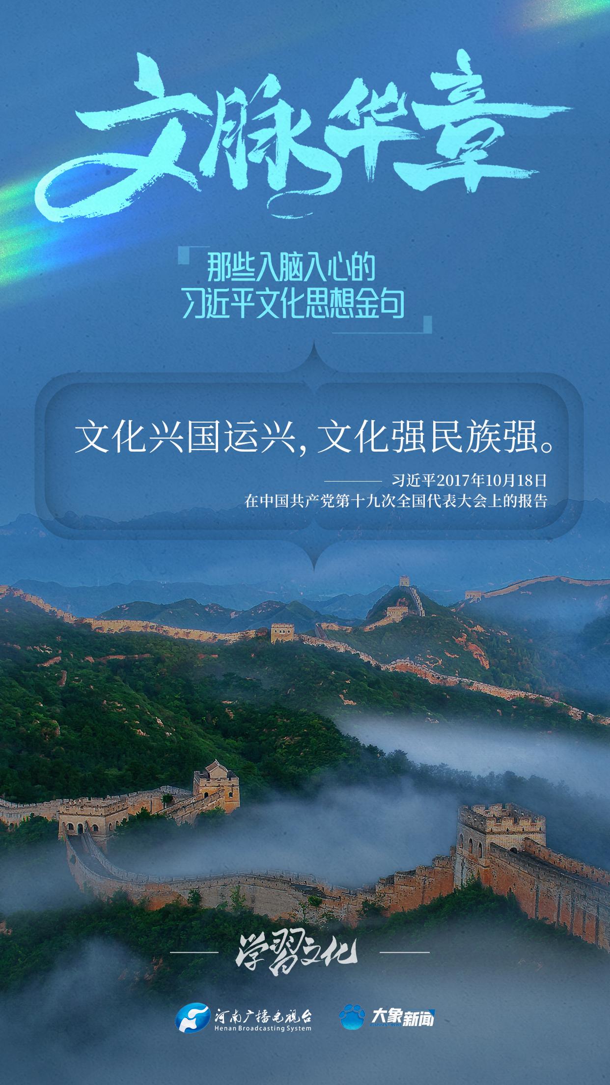 大象新闻将持续梳理,推出系列策划《那些入脑入心的习近平文化思想金句》,邀您一起认真品读。今天推出《文化是一个国家、一个民族的灵魂》。