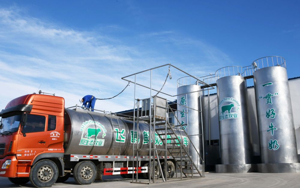 在黑龙江飞鹤乳业股份有限公司专属甘南瑞信达原生态牧场,工作人员在检查一辆刚装完鲜奶的全封闭低温安全运输车(2018年10月30日摄)。长期以来,一批民营企业推动打造农业全产业链,带动农民就业增收。通过技术创新和品牌建设,提升产品质量,为乡村振兴注入强劲动能。