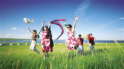 “草原真的太美了!蓝蓝的天、白白的云、绿绿的草,还有那成片的油菜花海的黄,五彩呼伦贝尔真是名不虚传啊!”第一次来呼伦贝尔旅游的南京游客刘女士不禁连连赞叹。这几天,来自杭州、北京、南京等地的大批游客走进大兴安岭林海、穿越呼伦贝尔草原,在河边戏水避暑、在草原徜徉休闲,沉浸在清凉的夏天里。“今年呼伦贝尔雨水丰沛,气候宜人,全国各地的摄影协会及团体纷纷来草原采风。目前,接待来自北京、成都、西安、沈阳和大庆等地的专业摄影师400余人。”在机场送别摄影团队的呼伦贝尔摄影家协会主席常胜杰说。