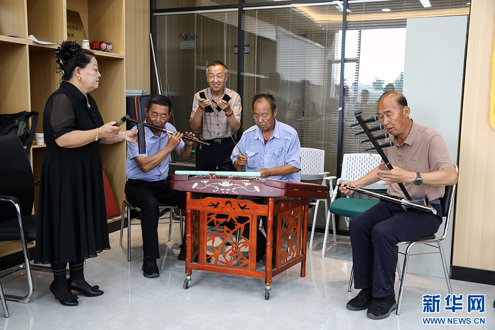 在准格尔旗十二连城乡五家尧村文化活动室,“乡村乌兰牧骑”队员们弹扬琴、拉四胡、唱漫瀚调。(拍摄与2025年6月27日)新华网石毅 摄
