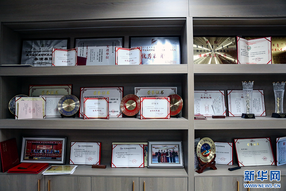 在准格尔旗旗乌兰牧骑荣誉陈列室摆放的奖状、奖杯。(拍摄与2025年6月27日)新华网石毅 摄
