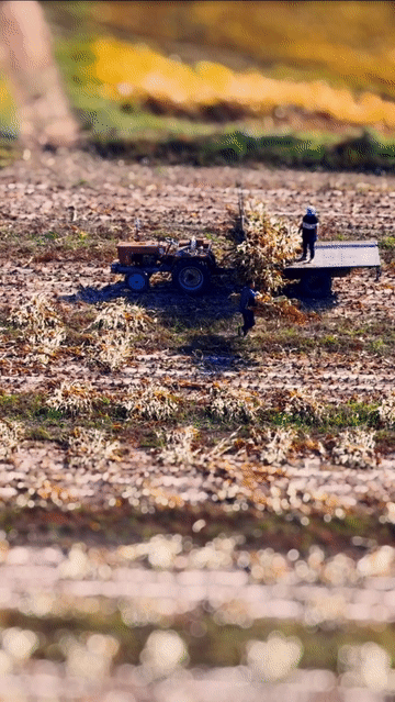 眼下,内蒙古河套地区进入秋收时节,摄影师利用移轴镜头带大家感受不一样的秋收视角。