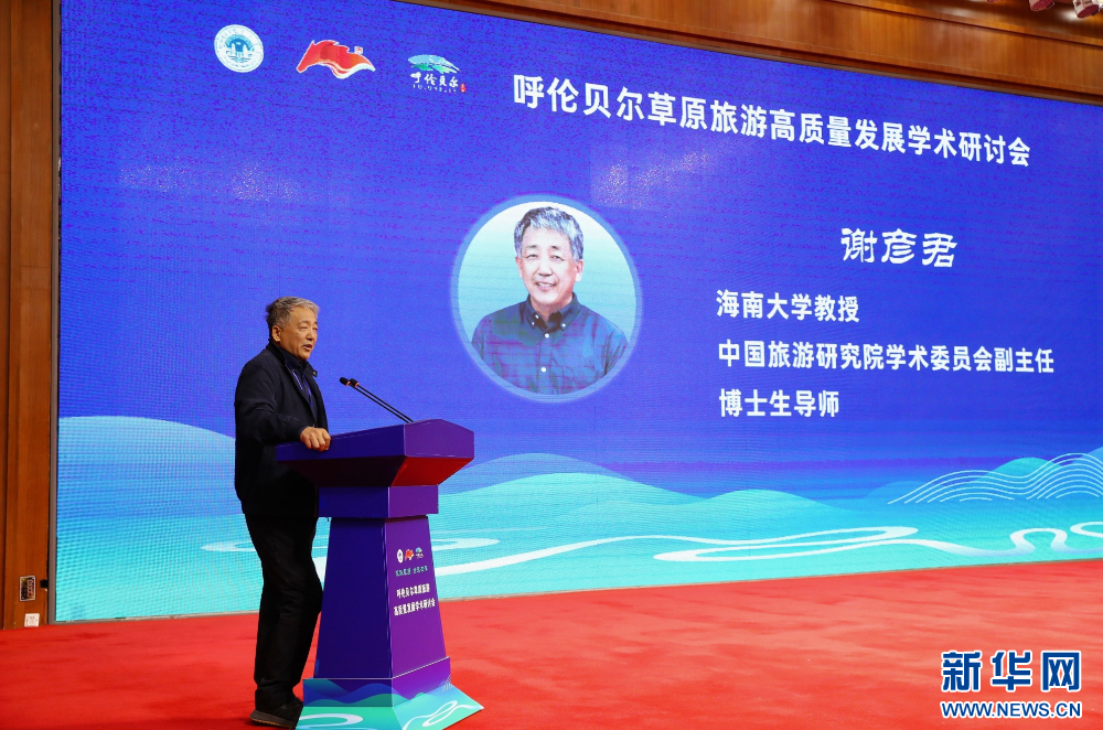 学者在呼伦贝尔草原旅游高质量发展学术研讨会上作主旨报告。新华网 杨腾格尔摄