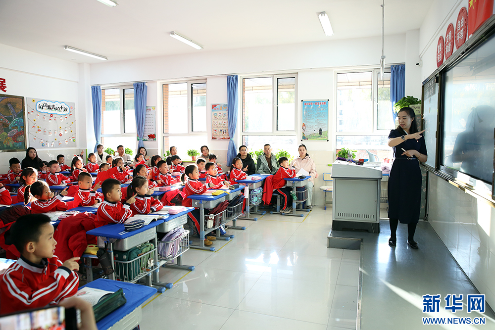 家长们坐在教室两侧、后方,和孩子们一同沉浸在课堂学习中。新华网 石毅摄