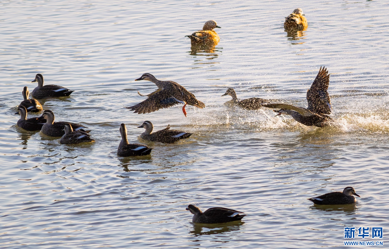 初冬时节,大批越冬候鸟在内蒙古呼和浩特市玉泉区“千岛湖”景区栖息、觅食,构成一幅灵动的自然画卷。