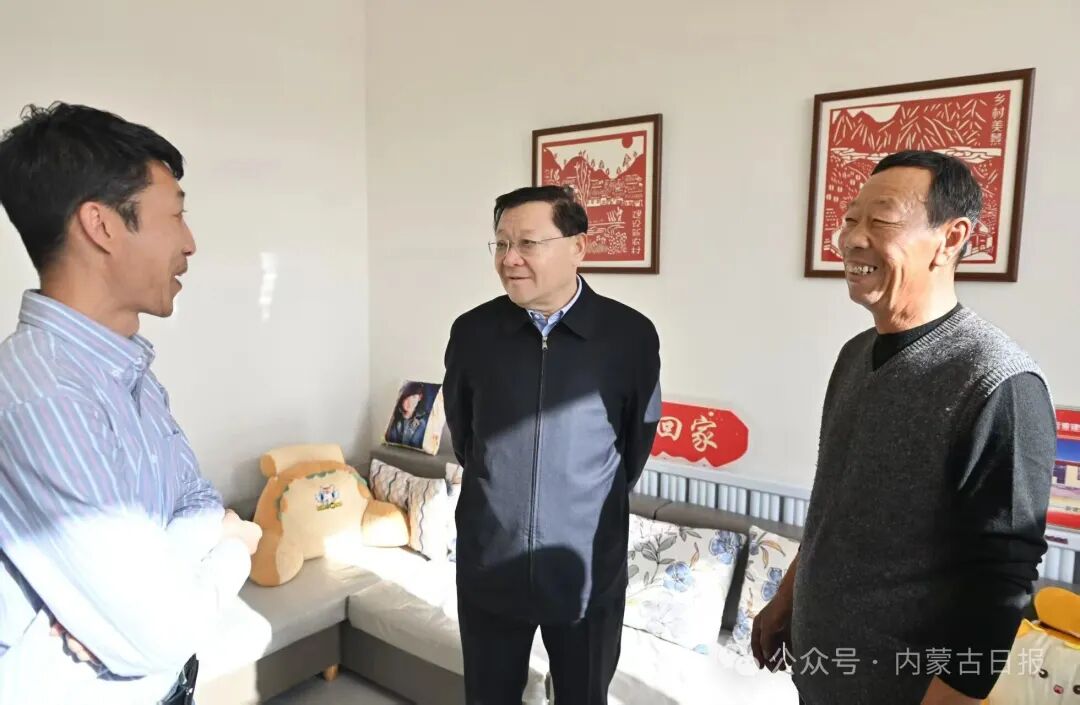 11月30日,自治区党委书记王伟中来到土默特右旗双龙镇路三圪堆村,走进受灾群众家中实地察看,与他们一起交流,详细了解之前房屋受损程度、维修重建过程、生产生活情况。草原云·内蒙古新闻网记者 马建兵 摄