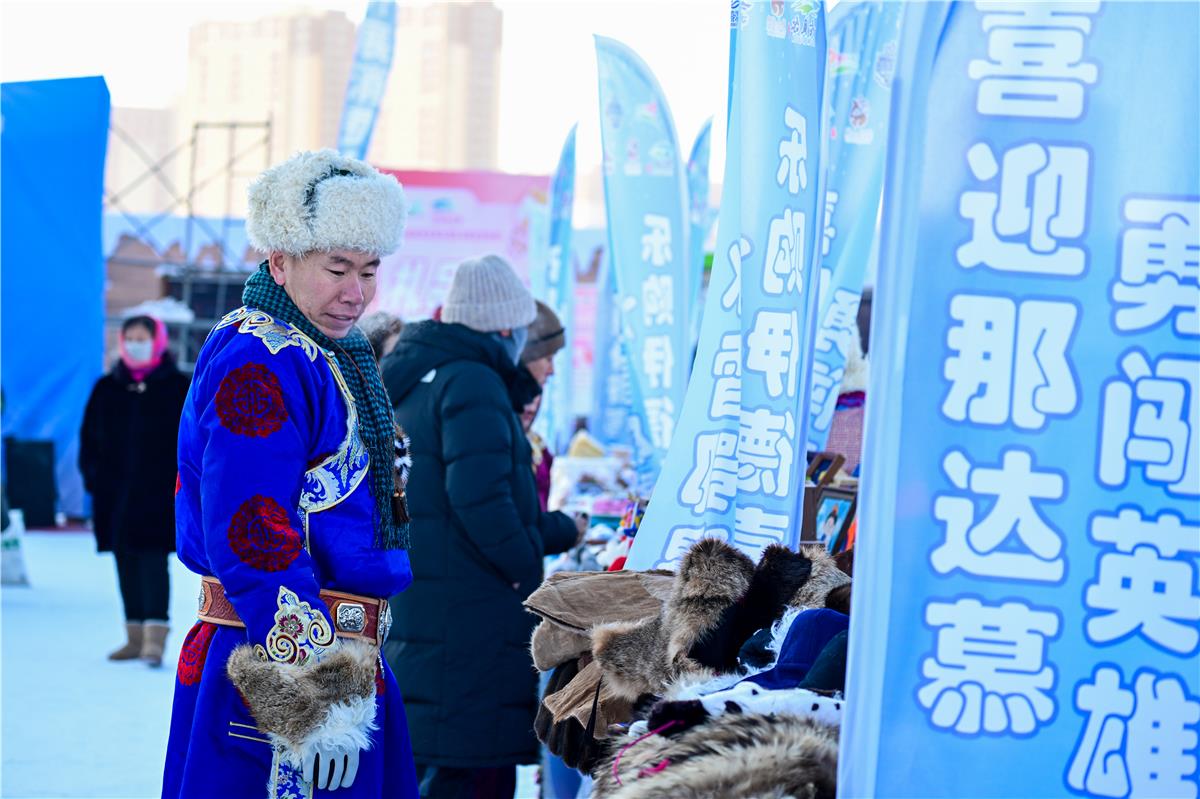 城中之欢,雪原之歌。这是冰雪那达慕首次在海拉尔区伊敏河冰面上举办。7万平方米的活动场地分为仪式展演区和业态运营区,创新规划了蒙古包群、冰雕打卡区、旅拍区、美食大集、牧户体验区等5大功能区域,吸引了近30家特色商家入驻。内蒙古12个盟市、呼伦贝尔市14个旗市区首次全部在现场搭建展销与打卡点,集中展示各地风物。