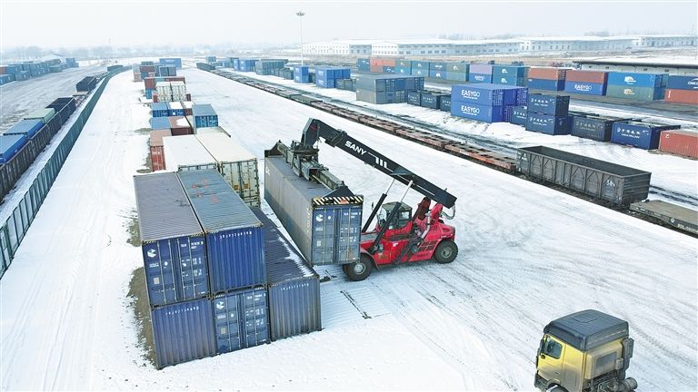正在装载中的中欧班列。