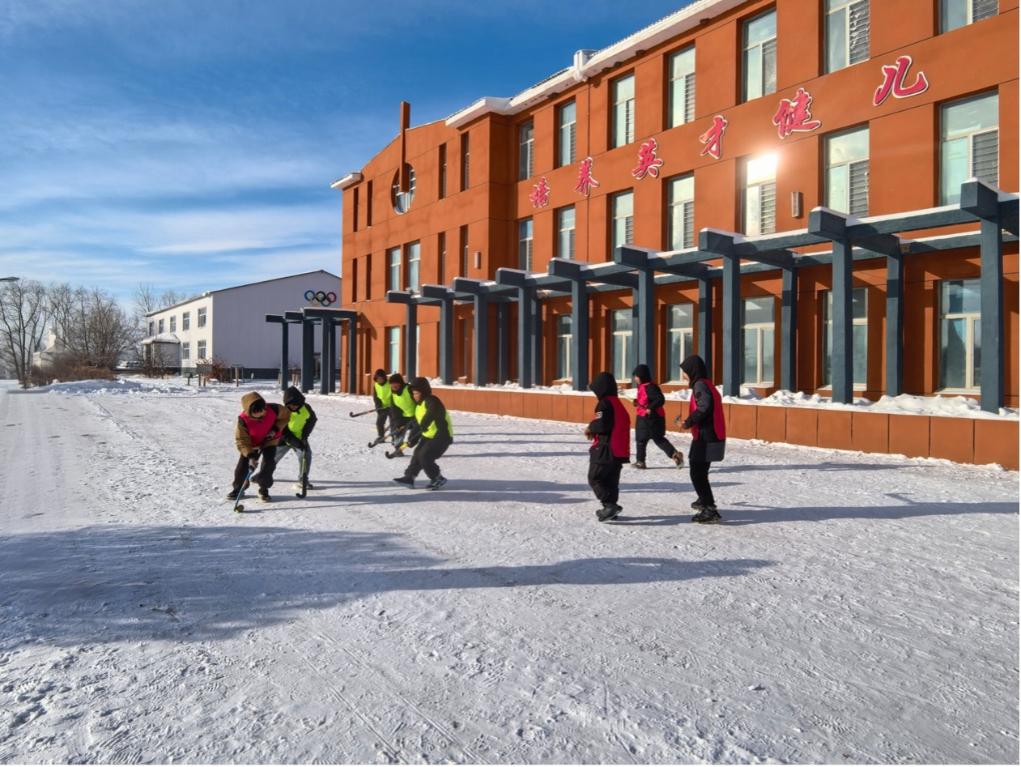 走进阿尔拉中心校,冰雪活动的热闹氛围扑面而来。学生们手持曲棍球杆在雪地上追逐竞技,小小的曲棍球在操控下快速穿梭。即便天寒地冻,大家热情丝毫不减,身姿矫健、活力迸发,双方攻防拉锯、互不相让,尽显竞技热情与团队协作精神。“我参加了雪地曲棍球比赛。虽然在雪地上传球和奔跑都非常困难,但我们顺利完成了比赛,经过这场比拼,大家的配合越来越默契。”该校学生敖子睿说道。