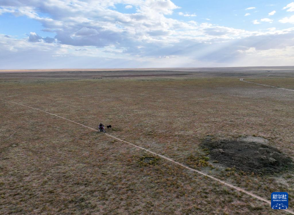内蒙古四子王旗广袤的草原上,北风呼啸,牧草已经变黄。一顶白色的蒙古包里钻出一位牧民,他熟练地跨上自己的摩托车,准备到远处查看羊群。