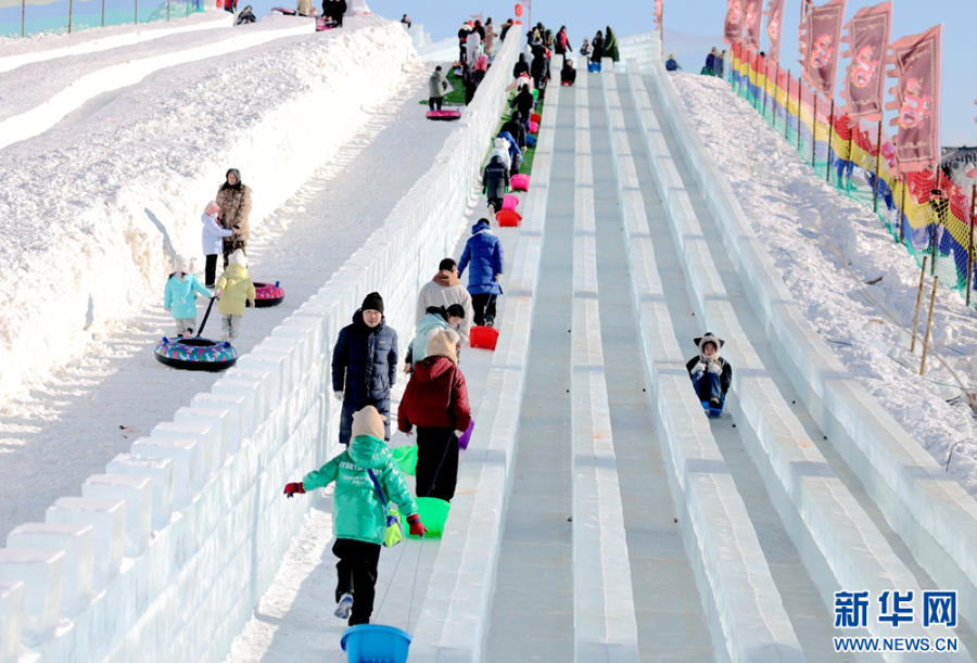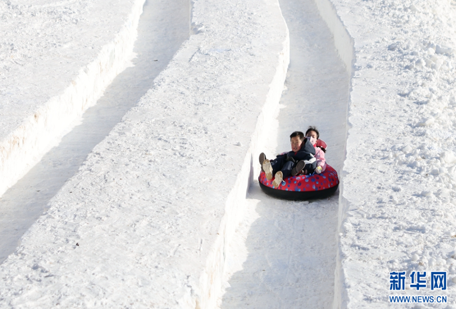 游客体验冰上娱乐项目。新华网 李倩摄