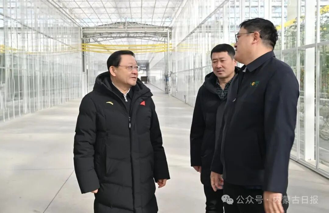 1月29日,自治区党委书记、人大常委会主任王伟中在宏福现代农业产业园仔细了解企业生产经营情况。草原云·内蒙古新闻网记者 马建兵 摄