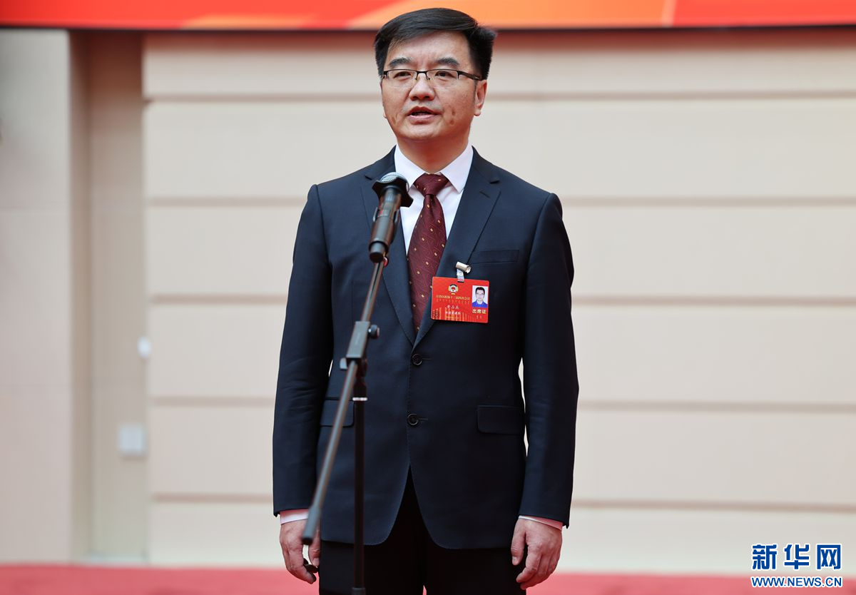 2月4日下午,内蒙古自治区政协十三届四次会议开启第二场“委员通道”。自治区政协委员、自治区宏观经济研究中心农牧环资处处长黄占兵接受采访。新华网 杨腾格尔摄