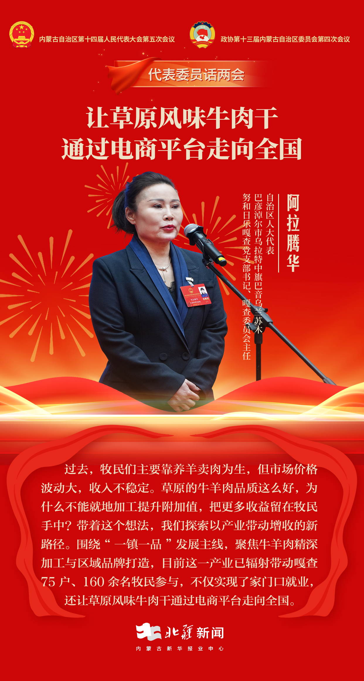 阿拉腾华说,项目投产后,预计年加工牛羊肉50吨,年销售收入达340万元,利润约34万元,每年可为嘎查集体增收6.5万元以上。产业辐射带动75户、160余名牧民就近就业,特色牛肉干借助电商销往全国,牧民腰包越来越鼓。(记者 杨净毓 李文华 张鑫)