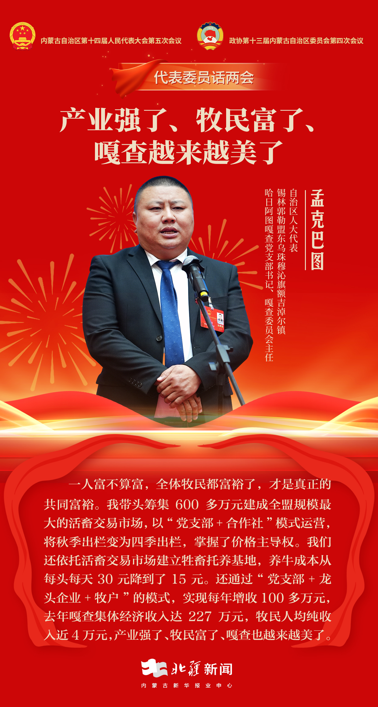 孟克巴图说,一人富不算富,全体牧民都富裕了,才是真正的共同富裕。